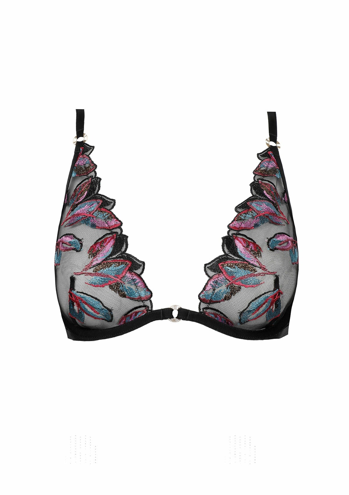 Three-piece set with: underwired triangle, garter belt, and thong