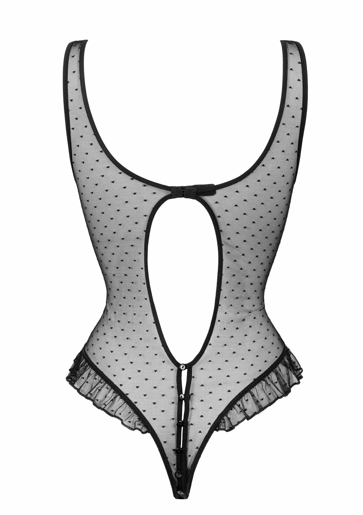 Its line of small buttons at the front subtly attracts the eye, and the opening at the crotch allows for complete freedom in playing with desires.