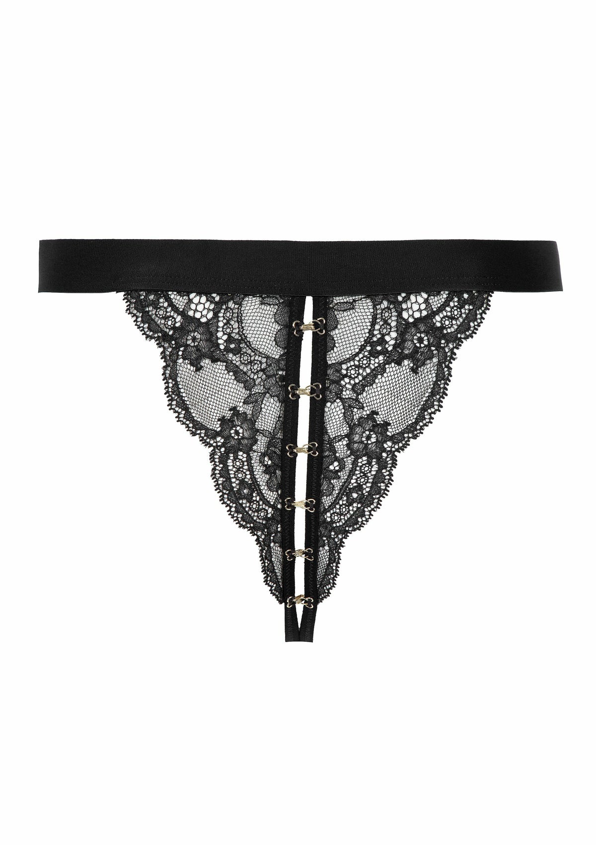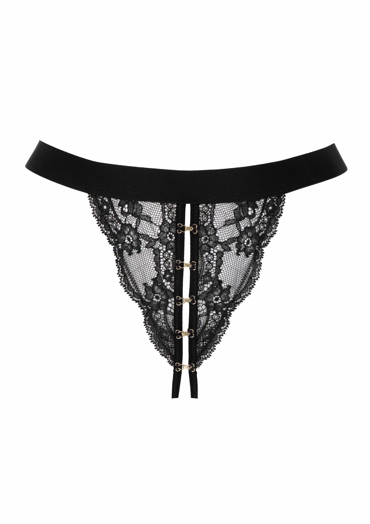 Mini brief totally open with graphic waistband and delicate lace, opening completely from front to back with small golden hooks.