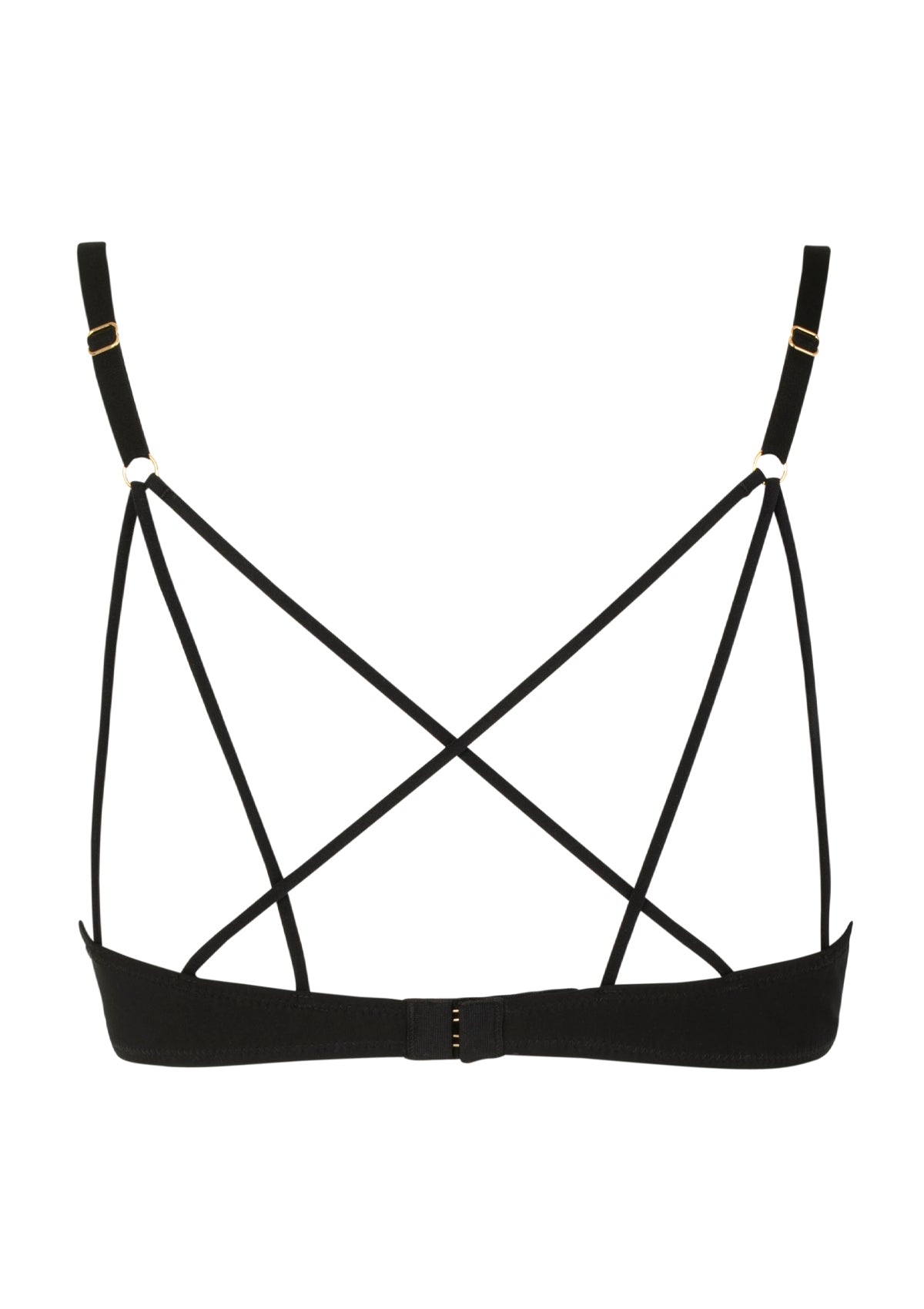 The golden threads of the embroidery give a very refined touch of shine to the lingerie. The basque is in black knit and a play of cutouts on the back reveals flesh fishnet. The play of elastic and interlacing brings a touch of originality to your back. Can be worn under a low back sweater.